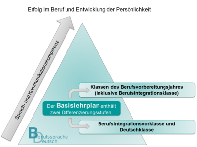 Eine sprachbewusste Unterrichtsgestaltung ist in allen Klassenformen zur Berufsvorbereitung grundlegend. Je nach sprachlichen Lernvoraussetzungen der Schülerinnen und Schüler ist die entsprechende Differenzierungsstufe aus dem Deutschlehrplan für Berufsschulen und Berufsfachschulen (vgl. Basislehrplan Deutsch) anzuwenden. Im Sinne des durchgängigen Unterrichtsprinzips Berufssprache Deutsch ist die Verwendung von Sprache in berufsbezogenen Situationen anzubahnen.