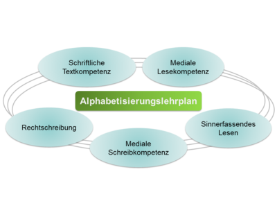 - Sprachbildung in der Praxis mit Basisinformationen, veränderbaren (digitalen) Materialien zu Lernvoraussetzungen und Sprachbegleitung, zur Alphabetisierung und Zweitschrifterwerb, zum Spracherwerb, zu Methoden, Strategien und Arbeitstechniken, zur integrierten Grammatik und positiven Fehlerkultur sowie die Lehrkraft als Sprachvorbild
